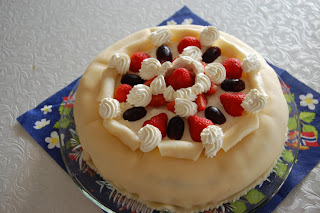 I midten fylles det med litt krem. jordbær og druer/blåbær.